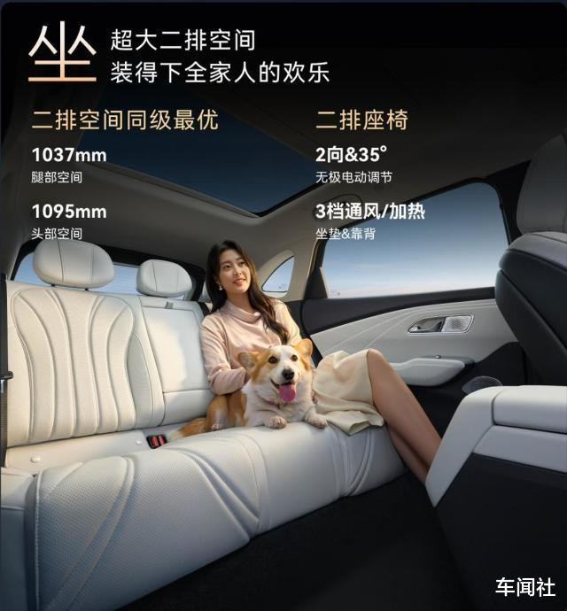打开车门,首先感受到的是一种“敞亮”。近3米的长轴距,化作了后排1037毫米的奢侈腿部空间。那不是仅仅“够用”,而是可以让身高一米八的父亲,在接孩子放学回家的路上,也能舒服地伸直双腿,刷一会儿手机。中央通道宽达361毫米,孩子抱着书包上下车,再也不用侧身蜷缩。