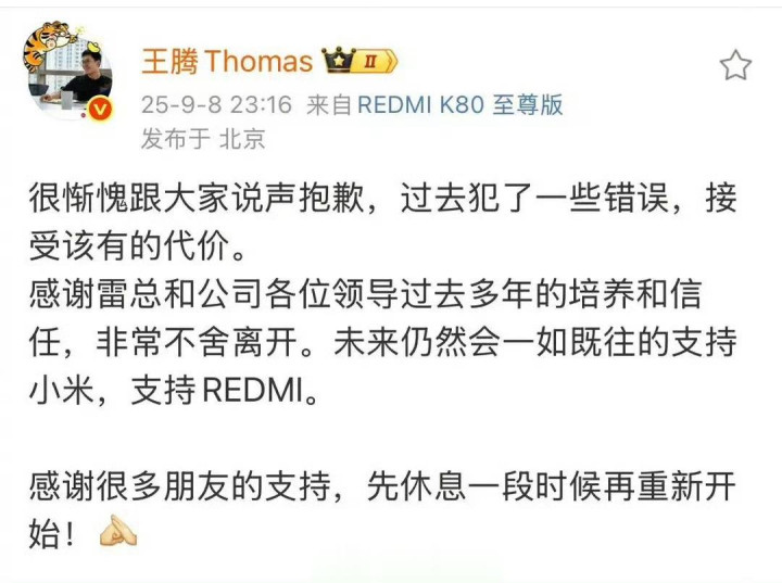 #王腾多平台账号现状#王腾被小米辞退后多平台账号变动:小红书注销、快手被封禁、抖音已私密、视频号清空内容亚晶金融亚晶金融。