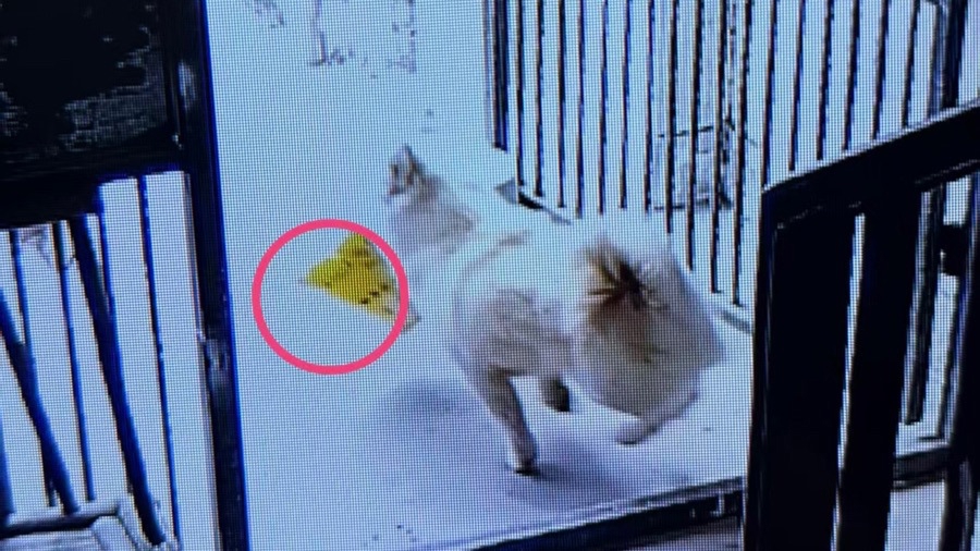 民警朱君杰和黄子涵迅速到达现场,从李女士的购买凭证看,她和快递师傅说的丢失的物品价值2300余元。调取公共视频后,民警意外发现,“盗窃者”竟是一只浅黄色宠物狗。视频画面显示,该狗从楼上下楼梯时经过李女士家门口,看到一个小包裹后调皮地将其叼起,随后摇着尾巴跑出楼道,过了很久再从视频出现时,狗嘴里的包裹就不见了踪影。