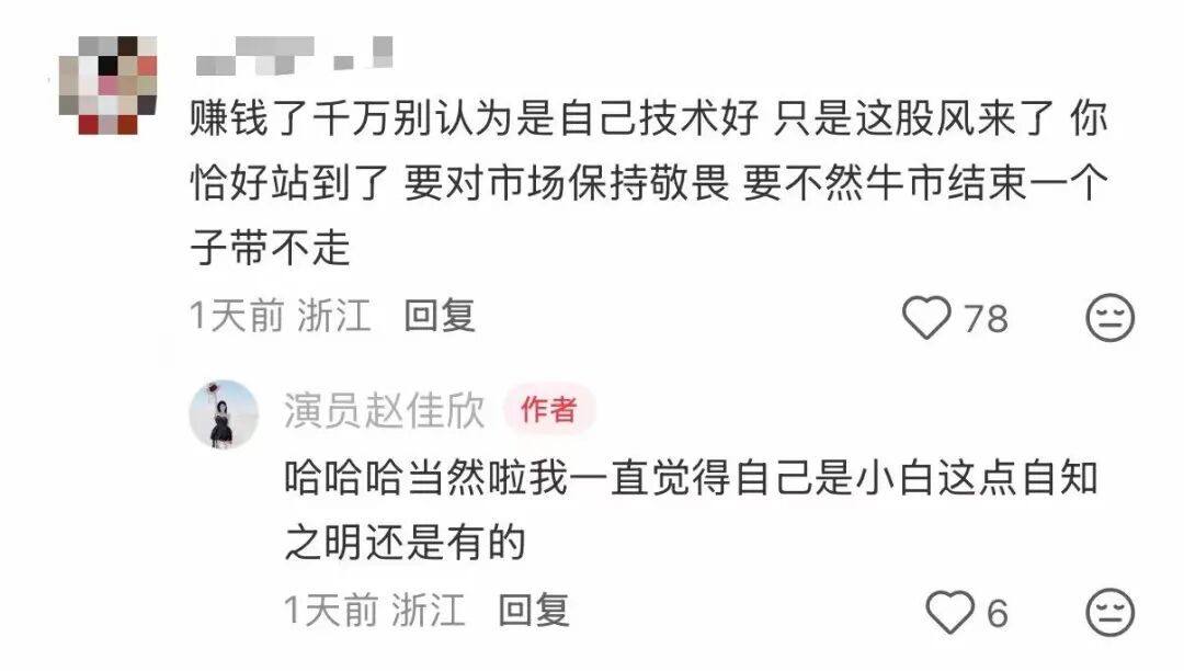 2月2日,赵佳欣再度更新动态,晒出的收益页面显示亏损19993.17元。她坦言:“前天还在沾沾自喜,昨天就回调了”,更直言“买基金刚吃上口肉就被割,这几天的状态就是嘻嘻不嘻嘻”。